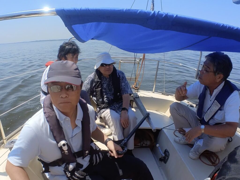 この日のヘルムスの練習は小倉が最初。軽風&微風は不安定で苦手なのです。レースじゃないからお気軽にと言われても、気を抜くと蛇行の連続になってしまうので、やはりここは緊張してがんばります。