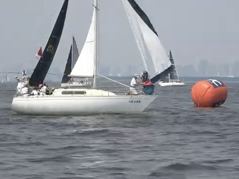 上マーク回航直前ではレースクラス艇がルームを要求しながら割り込む場面もありました。通常であれば抗議すべき状況ですが、こちらはそれどころではありません。
